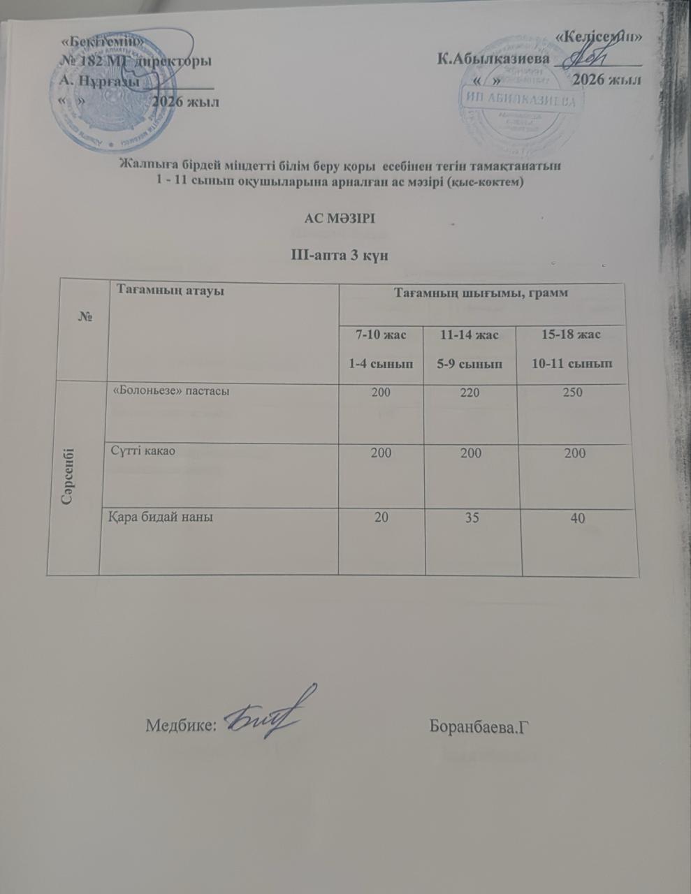 » Ас мәзірі 3 апта 3 күн