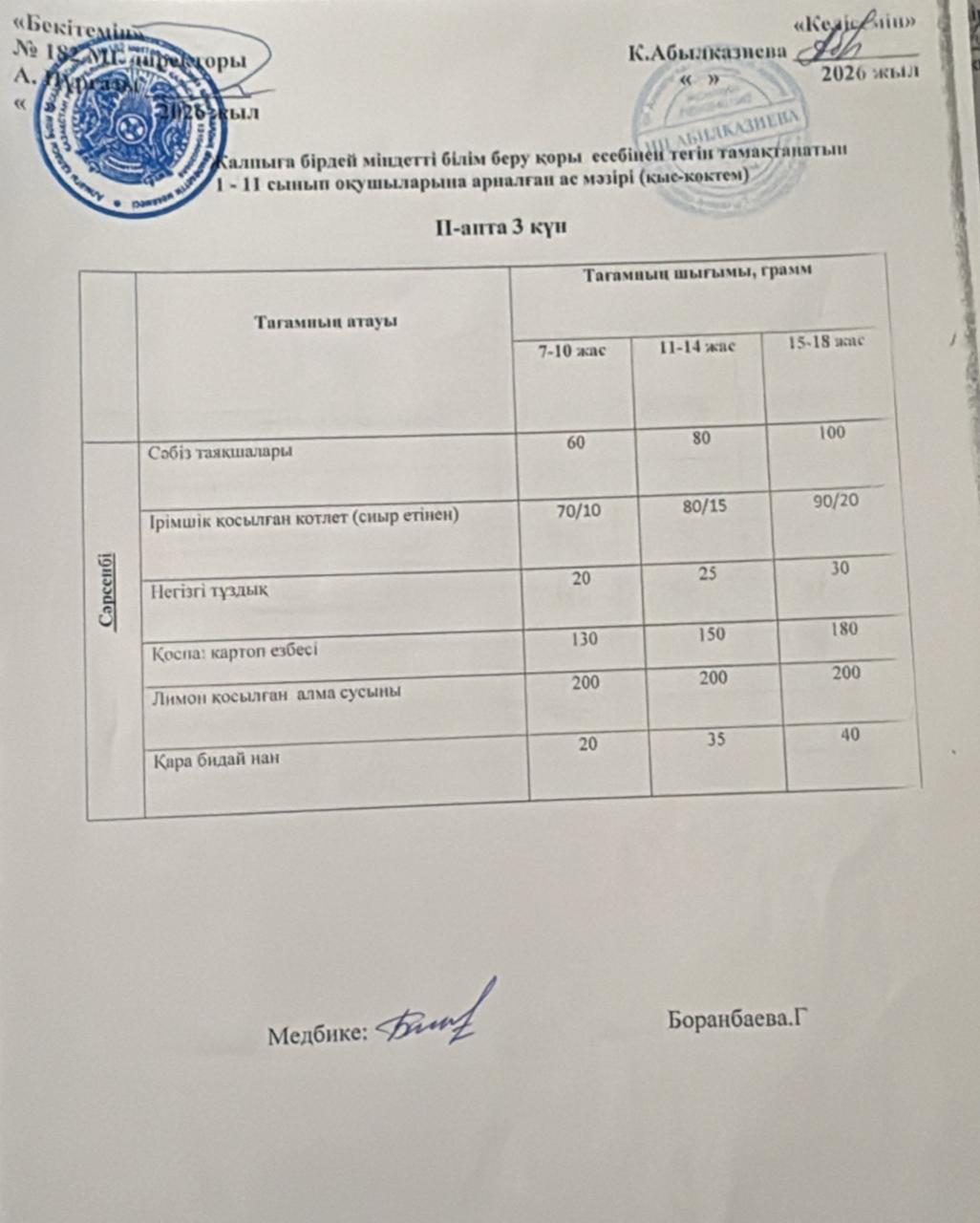 Ас мәзірі 2 апта 3 күн
