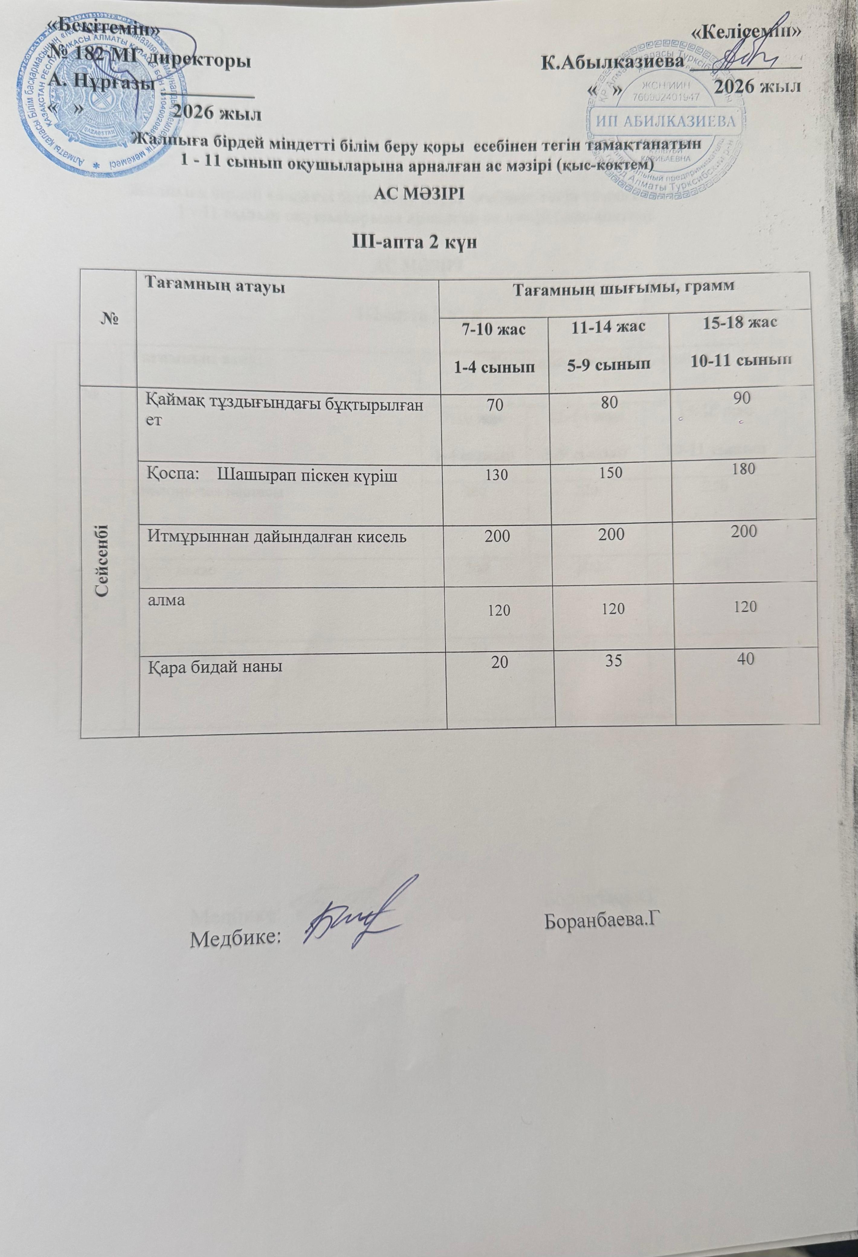 » Ас мәзірі 3 апта 2 күн